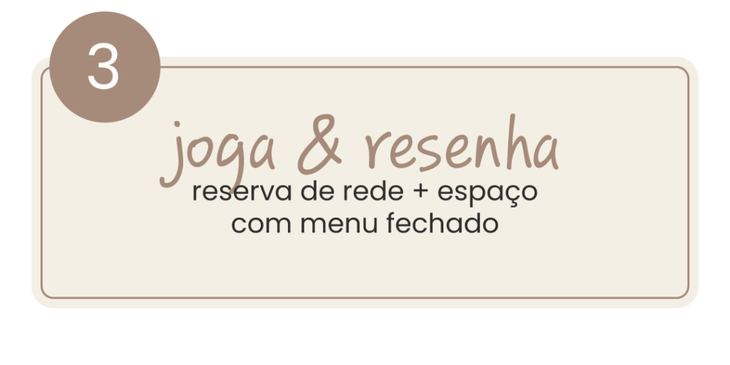 pacotes com reserva de rede + estrutura extra (bangalô, lounge, etc)